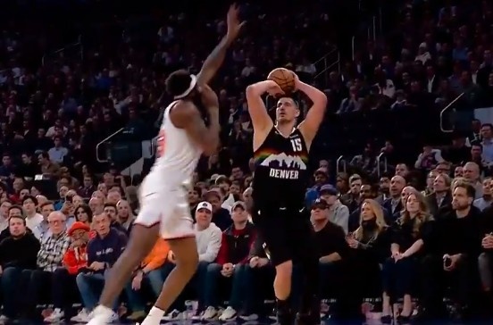 开云体育官网-太小瞧我臂展了!约基奇慢悠悠试图撤步三分 米切罗飞身大帽扇飞