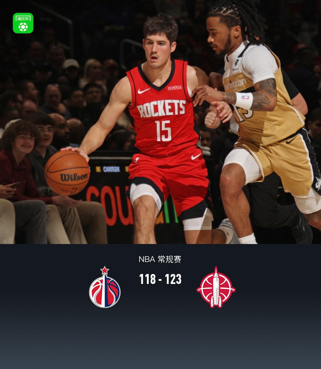 第四节奇才谢里夫-库珀拿下11分,火箭申京拿下11分,最终奇才118-123不敌火箭