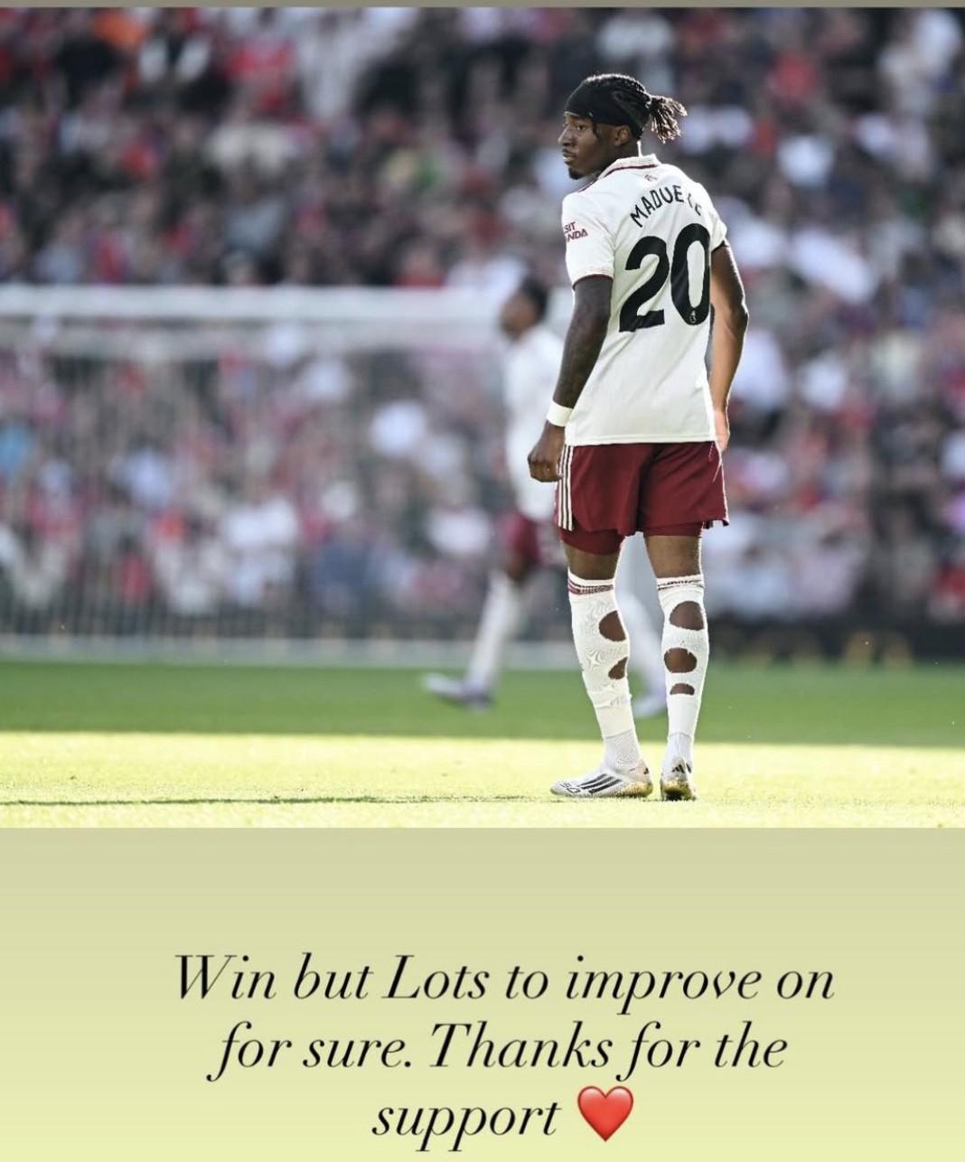 马杜埃凯写道,赢下了比赛,但毫无疑问,我们还有很多需要改进的地方。感谢大家的支持。
