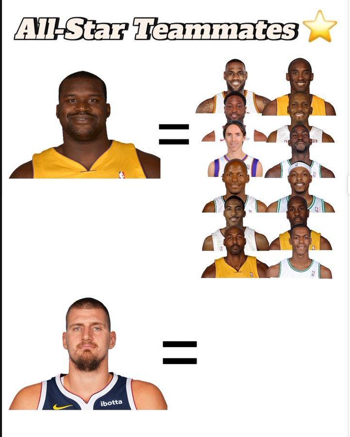 直播吧8月25日讯 今天,掘金自媒体@The Lakers Daddy对比了约基奇和奥尼尔全明星队友的数量。据@The Lakers Daddy的统计。奥尼尔职业生涯有12名全明星队友,而约基奇生涯至今全明星队友的人数为0。